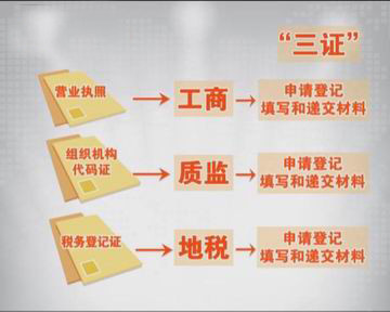 “三证合一”是指将市场主体原需办理的工商营业执照、组织机构代码证、税务登记证三证合为一证。申请企业只需一次登记,4个工作日后就能领取有税务登记号、组织机构代码号的工商营业执照,实现一证代替三证。